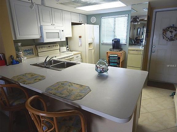 Fully furnished 1rst floor unit in Lakeshore. This unit has many upgrades. Recently remodeled kitchen. Newer counters and cabinets. Seller extended the counter top to have room for a breakfast bar w/ barstools and added extra under mounted cabinets for more storage. Updated track lighting over breakfast bar and no dome ceiling. Both bathrooms have newer toilets, cabinets and tub/showers. Diagonal tile floors all but in bedrooms. Seller added backdrop of mirrors to outline the sliding door leading to the tiled lanai. This gives the condo a much larger feeling. Unit is tastefully decorated and has great views of the lake.