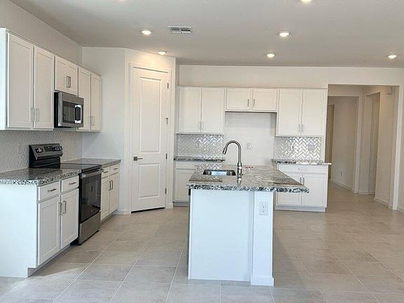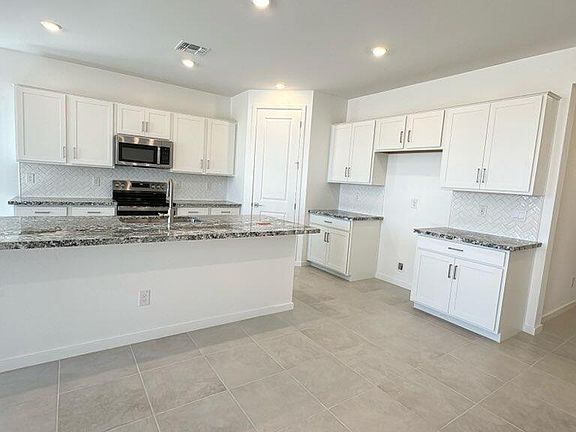 READY NOW! This home is stunning, with four bedrooms, an office and 2.5 baths! Energy efficient, Smart Home includes video doorbell, thermostat, garage door opener and more. Ceiling fan prewires in all bedrooms, 8' interior doors, soft water loop in the garage. Dream kitchen with lots of 36'' white cabinets, brushed nickel hardware, herringbone pattern backsplash, and beautiful granite counters. Large island, breakfast bar, single bowl sink, GE stainless steel appliances. Brushed nickel fixtures throughout, half bath for quests, bathrooms include comfort height toilets! Spacious bedrooms, lots of closet space, dual sinks in primary & bath two. Tile floor throughout except bedrooms and closets have carpet. All appliances and blinds are included. Come See!
