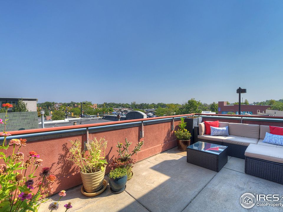 Hard to find one level living! Impressive 3rd floor penthouse loft/condo, flooded with natural light offering gorgeous foothill and city views! Special features include a vaulted open floor plan, cherry floors, exposed brick, maple cabinetry, stainless appliances, and a new HVAC system. Two wonderful terraces- North & South! Excellent location with locked elevator access, secure garage parking and abundant storage in two large storage rooms. Close by amenities include Ideal Market, North Boulder Park, a short walk to Pearl Street and only 12 blocks to the Laughing Goat!