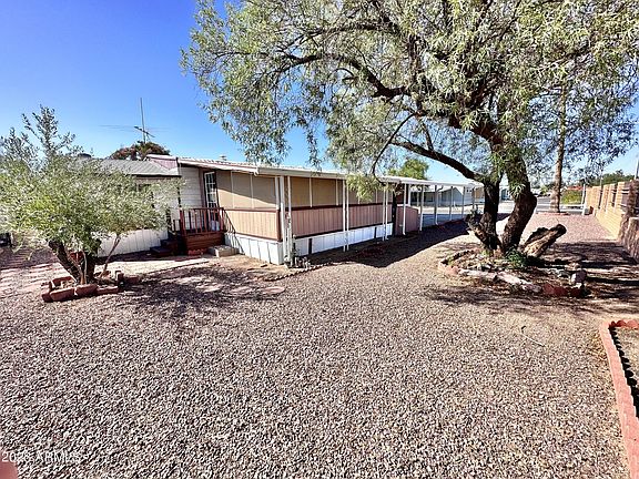 Welcome to your new oasis, located in the heart of Phoenix close to multiple freeways! This double wide mobile home, built in 1981, is a haven of comfort, convenience, and relaxation. Located in a quiet neighborhood, this residence offers the ideal combination of space and amenities. Featuring a 3 bedroom split floor plan, vaulted ceilings, a lovely fireplace in the great room, and plenty of storage space with 3 sheds in the backyard. Other features include a spacious Arizona room and a carport large enough to accommodate more than 2 vehicles. Don't miss out on this 55+ opportunity!