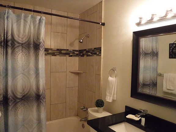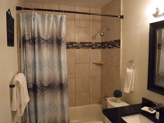 Home was remodeled in 2017. New 2017 black slab galaxy granite counters New 2017 white subway tile back splash New white cabinets and hardware New sink and modern pull down faucet All black appliances included All window coverings included 2 bedrooms, living room, kitchen,dining area, full bath, laundry area and one large bonus room with closet. New tile in bedrooms New paint outside 2018 Ground floor Plenty of parking area New LED lighting and energy saving fans New roof 2016 New 2018 LARGE block fenced yard in back for tenant New gate 2018 New 2017 bathroom vanity New tub and tile surround New 2017 black granite counters in bath New bath lighting and mirror New security door 2017 Unit has private washer and dryer for their own use New window coverings $899 deposit, $300. cleaning deposit, $300. pet deposit