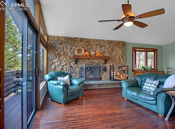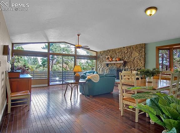 A gem of a home nestled in the trees in much sought after District 12! This property is located minutes from Bear Creek Park, Stratton Open Space, Red Rocks Canyon, Section 16, Gold Camp Elementary, Jr. High and Cheyenne Mountain High School! PRIME LOCATION! 3 BEDROOMS on 1 LEVEL! OPEN FLOOR PLAN! Enjoy watching the snow fall from the large floor to ceiling windows in the family room, all while sitting by the wood burning fireplace. The Dining area is located next to the large open family room. The front and back decks provide great summer enjoyment! The kitchen opens up to a kitchen nook or sitting room with a walkout to the back deck. The Master Bedroom offers a walkout to the back deck and a large master bathroom with large closets and built in drawers. The main level laundry room has a sink and is conveniently located near the master bedroom.2 Additional bedrooms and a full bath complete this level. The walkout lower level features an additional bedroom or could be used for a movie/family room. The basement includes an unfinished, heated area perfect for carpentry, crafts, workout room or more! With some updating this home will shine!