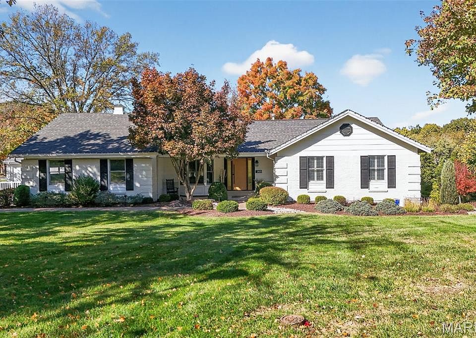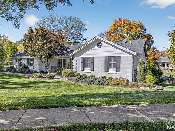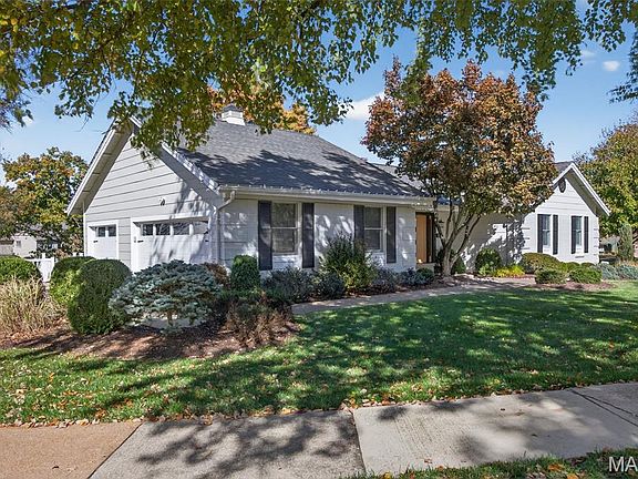 This home truly has it all. Beautifully updated and meticulously maintained, this 4-bedroom, 3-bath atrium ranch offers 3200 sq ft of finished living space on a perfectly positioned ½-acre corner lot at the entrance of a quiet cul-de-sac in Brentmoor Place. The first impression is unforgettable. A custom solid-wood front door with black iron accents, makes an entrance all its own — setting the tone for the quality and craftsmanship found throughout. Step inside to vaulted ceilings, hardwood flooring, and an atrium wall of windows creating a warm, airy great room perfect for both quiet mornings and lively gatherings, The renovated kitchen combines function and charm with updated cabinetry, solid-surface counters, stainless-steel appliances, and a sunny breakfast bay—the perfect spot to sip your morning coffee while watching the neighborhood come to life. The formal dining room sets an elegant tone with double crown molding and wainscoting, ideal for hosting family and friends. All three bathrooms have been completely updated, including the primary suite which features a skylight, adding soft natural light to the spa-like bath. The finished lower level expands your lifestyle with a stone fireplace, wet bar, recreation area, fourth bedroom, full bath, and flex/play space—perfect for entertaining or multi-generational living. Major updates ensure peace of mind, efficiency, and long-term value: • Hardie board siding & full exterior paint (2022) • Andersen windows throughout • HVAC System (2023), water heater • New custom solid-wood front door • Insulated garage doors • Aggregate front and back sidewalks & composite backyard steps • Updated landscaping, plantation shutters & landscape lighting The property’s three-car, side-entry garage is a rare find in this neighborhood and perfectly complements the home’s clean, classic curb appeal. Thoughtful landscape lighting highlights the exterior architecture after sunset, creating a resort-like ambiance that’s both welcoming and impressive. The neighborhood itself is something special—holiday luminaries, festive trick-or-treating, summer BBQ cook-off, progressive dinner, and a book club including one of the most connected and caring HOA’s around. Located in top-rated Rockwood Schools and just minutes from shopping, dining, and trails—Come experience the warmth and light of Brentmoor Place’s most beautifully updated homes. Schedule your private tour today and discover the place you’ll love coming home to every day.