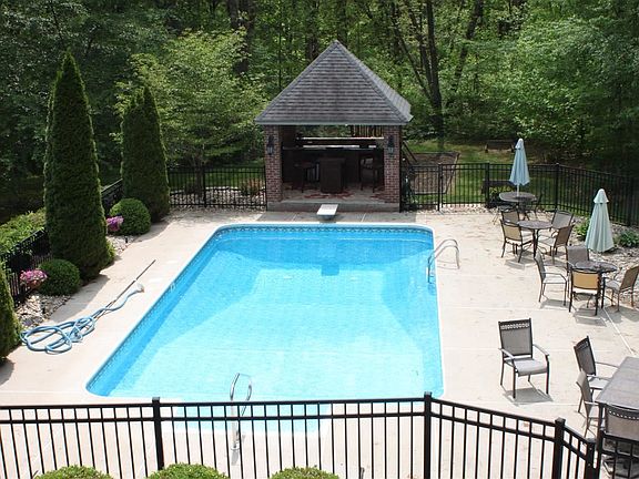 Your own private retreat! 6 bedrooms 4 full baths 2 half baths! 1st floor has great room, kitchen, breakfast nook, formal dining, master suite w/ completely renovated master bath, & study. 2nd level has 4 bedrooms, 2 w/ jack/jill baths between them, 1 w/ private balcony, 4th bedroom has built in club house. Basement has kitchenette, family room w/ fireplace, in law suite, exercise room, full bath & half bath, & hidden room perfect for wine cellar, safe or security room. A double sided fireplace brings charm to the great room & kitchen. Kitchen has a huge island, gorgeous granite counter tops & new stainless steel appliances. Beautiful custom cabinetry & built in cabinets thru out home. Beautiful landscaping outside of home includes in-ground pool, brick pavilion, & 6 person hot tub. Huge deck & patio. 3.5 car garage.
