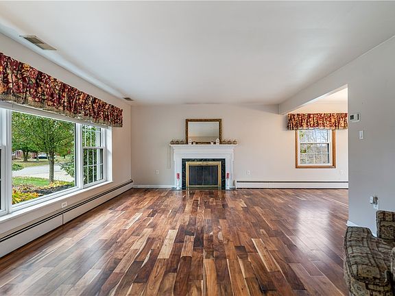 WELCOME HOME!! All of the work has been done for you w/ this 3 bedroom 2-1/2 bath brick home updated with a BRAND NEW KITCHEN, granite countertops, cabinets w/ soft close doors, new SS appliances - gas stove, refrigerator, microwave, dishwasher. New windows in last 3 years & custom-window blind in living room front window. Living room has wood-burning fireplace to keep you warm & cozy this winter. New flooring throughout main floor. Dining room w/ sliding door to maintenance free deck. Primary bedroom has 2 closets for additional storage. Updated full bath upstairs w/ tub & shower also has heated floor. Upstairs laundry area w/ Washer & Dryer staying. 2nd full bath (shower only) in full, unfinished walk-out basement. Fenced-in yard with shed. Maintenance-free deck w/ gazebo & propane grill staying. Radon system already in place. Workbench in HEATED GARAGE is staying. New sewer line from house to road - 2013. Additional shed outside of fence included.