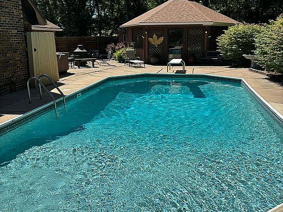 Your dream home awaits! You'll love this beautifully unique home with a scenic park-like landscaped setting, a fun playground for the kids, and a back yard oasis with an in-ground pool, hot tub and pool house. The 1.131 acres is completely enclosed with an iron fence and gates, and a specially designed wooden privacy fence is around the back yard. When entering the home you will be welcomed with the updates and the charming original character the home offers. The alluring distressed-style hardwood, tile, and natural lighting from all the skylights highlight the charm. The beautifully vaulted living room with appealing beams accentuates the ceiling. A wood burning fireplace and French doors are other features in this room. A wood burning stove fireplace is the focus of the large family room with newer carpet. The expansive kitchen opens to the family room and large dining room. Plantation shutters decorate the windows seen in the front of the house. Updated rooms on the back of the house can serve many purposes, like a game room, school room, gym, or sun room. These rooms include new laminate flooring. The house has fresh paint inside and outside and new vanities and toilets in 2 of the bathrooms. 4 bedrooms and 2.5 baths are on the main level. The expansive master bedroom on the main level includes a lovely hardwood fireplace with an electric insert and French patio doors leading out to the hot tub and pool. Another large bedroom along with 1 bathroom is on the upper level. Additionally, there is a loft and an extra sitting area/family room upstairs. A tropical vacation awaits you outside. The newly painted pool house has plenty of room for all the pool accessories and toys and has a pool table, refrigerator, fireplace, and a bathroom with a new toilet installed. A breezeway adds beneficial shelter as it connects the house to the 2 car garage. The owners are garden enthusiasts and included fountains and have planted trees including the willow tree, perennials, annual flowers, and shrubs throughout the lot. A premium ground mounted adjustable basketball goal is in the driveway. A custom built lofted shed stays with the property. There have been many updates to the house, too many to list here. The family gatherings and entertaining will provide you with cherished memories in this home. Come view this amazing property for yourself to see all the wonderful things this home has to offer.
