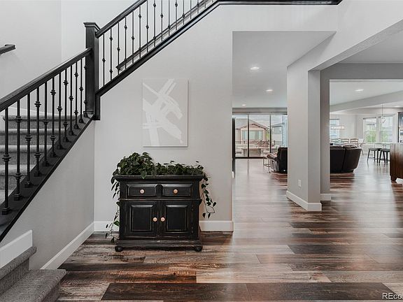 Discover luxury living in this exquisite home located in the highly sought-after Whispering Pines neighborhood. The main floor features an open floor plan, for seamless entertaining – with multi-panel sliding doors that open to a stunning deck with mountain views + a gas hookup for grilling and entertaining. The kitchen has an oversized island, alaska white granite countertops, GE Profile Appliances, blanco granite sink, and a sizable pantry. The living room also offers a cozy gas fireplace, and there is even an elegant formal dining room for intimate meals with friends and family. The main floor also features a bedroom with an adjacent full bathroom. Upstairs, there is a large loft perfect for a game room or flex space. The massive primary bedroom, equipped with blackout shades, boasts dual oversized custom closets and a spacious en-suite bathroom with dual vanities, a soaking tub, and a separate shower. Two additional spacious bedrooms share a “Jack and Jill” bathroom. The fully finished walkout basement is an entertainer’s dream. The basement bar, with blanco granite sink, upgraded granite, a professional-grade dishwasher, a bar glass washer, and shelving is perfect for hosting an epic party! The home gym is great for getting your sweat sesh in. The living area has HUE Smart lighting, blackout shades and multi-station built-in surround sound system for watching your favorite films. Sliding doors open to a covered patio with a 6-seat hot tub and privacy curtains, creating an ideal relaxation spot. A large bedroom with ample natural light and an en-suite bathroom featuring dual sinks, a large closet, and the shower even has a built in dog washing station! With a 3-car garage, hardwired high-speed internet, dual zone HVAC, a whole home humidifier, and a Remi Halo air purification unit, this home is equipped for modern living. The dog-friendly Astro turf, solar panels, zero-scape landscaping and smart outdoor lighting make this home as functional as it is beautiful.