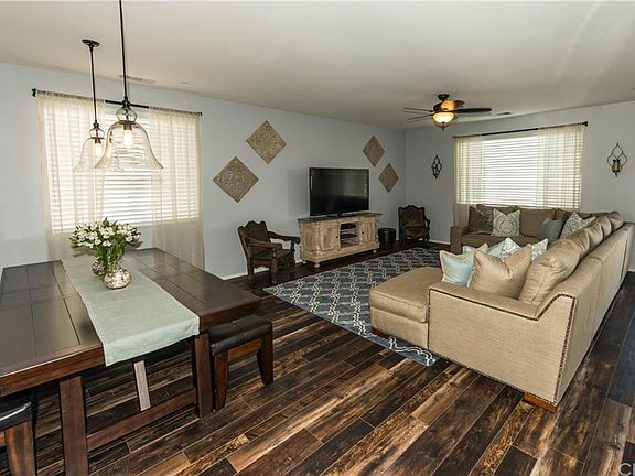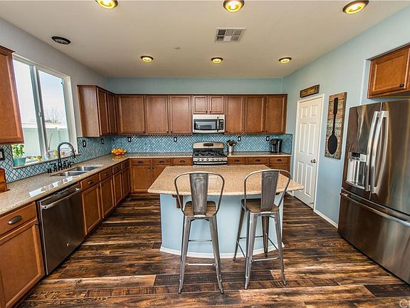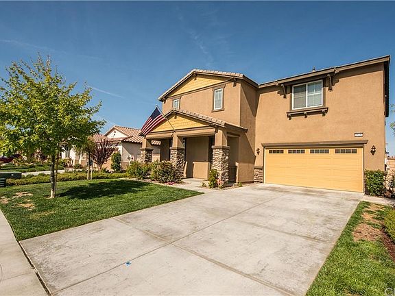 Living is easy in this beautiful 3 year young, spacious 2-story home located in the desirable, master planned community of Audie Murphy Ranch. Home has 4 oversized bedrooms adding plenty of room for study, sleep and storage, 3 full baths, generous living space with stylish finishes, and plenty of natural night flows throughout. Adjacent to the upstairs loft, the large master bedroom has its own private bath plus a massive walk-in closet. Other special highlights include a first-floor guest suite or home office with a full bath, 3 car tandem garage, new flooring downstairs, upgraded stainless steel appliances, granite countertops throughout, recessed lighting and ceiling fans, and tons of storage space! You'll be motivated to step outside to enjoy the large, manicured landscaping of this homes yard and patio with views of the San Jacinto and San Bernardino mountains. Miles of winding trails within the community to connect you with nature, two community parks, planned recreation center with pool, and a proposed elementary school site a half mile from the house! Extremely friendly neighborhood located equally between the 15 & 215 freeways, 30 minutes from Temecula Valley wine country and right down the street from the brand new Menifee Town Center.