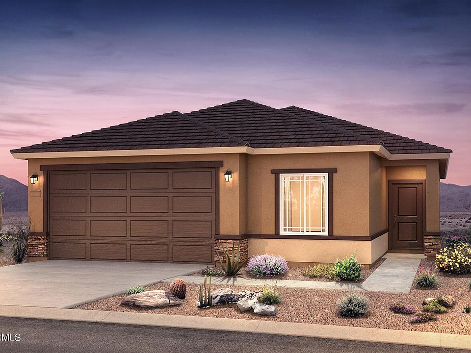 Coming in May, this quick delivery Marigold home boasts a convenient single-story layout situated on a private lot with no rear neighbors. Overlooking a charming community park, this home presents three bedrooms and two full baths. Inside, enjoy a professionally curated neutral interior design, complete with granite kitchen countertops, a designated eating area, and sleek stainless-steel appliances, including a refrigerator. Enhancing the aesthetic are beautiful dark stained 36'' upper cabinets. Additionally, the home includes a washer, dryer, and front yard landscaping, providing a comprehensive package for comfortable living.