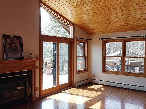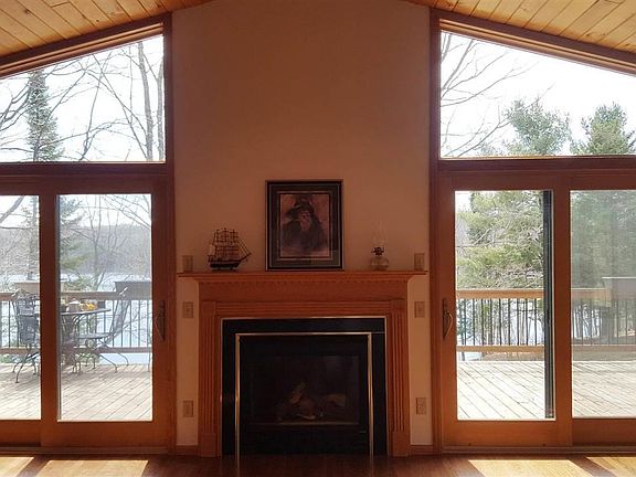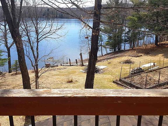 Very nicely kept one-owner home on a 2.27 acre south-facing lot. This home boasts 3 nice sized bedrooms, and a huge sunroom and deck overlooking Twin Lake. Brand new hardwood flooring, windows, doors, and patio doors! This is an extremely energy efficient home with slab heat. The rolling wooded property is a park-like setting of gardens & landscaping. There is a 3 stall 36x42 metal garage with all concrete floors, and 14x42 of it is heated, insulated, and finished inside. Great year 'round home or cabin.