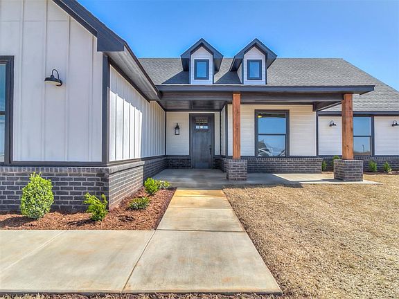 Absolutely stunning new build in Cashion school district's new subdivision Magnolia Estates. Boasting an open floorplan, vaulted ceilings and high end finishes, this modern farmhouse checks all the boxes! The kitchen is a dream with a propane gas range, farm sink, under cabinet lighting, custom vent hood and a spacious pantry. There are two vanities in the primary bathroom each with electronic anti fog vanity mirrors, a soaking tub, walk in curbless shower and a private lavatory. Off the primary bath is the large primary closet with lots of built in storage connected to the laundry room. The opposite side of the house contains 3 bedrooms, a bathroom with dual sinks and more storage! Large covered back patio to enjoy your huge back yard. a 3 car garage with a cut out for a storm shelter. Energy efficient with low e windows, spray foam envelop insulation and a heat pump with a propane back up.