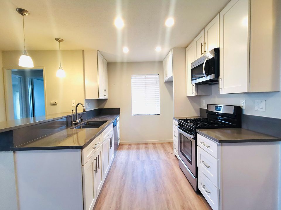 OPEN HOUSE on March 18th and19th 12-3pm! This beautiful and upgraded 2b2b condo is a quit upper corner unit. It offers two spacious master suites with full-size bathrooms, apart from each other for privacy, with an open floor plan, brand new carpet, upgraded white kitchen cabinets and quartz counter tops, stainless steel appliances, recessed LED lighting, newer water heater and more. Both bedrooms as well as living room have access to the patio with great view and perfect for BBQ and entertaining. Attached garage is spacious and has direct access to the unit. Small pets allow and washer & dryer are included. Great location, the community is conveniently located near the 5 Freeway and the 241 Toll Road, minutes away from shops, restaurants, Irvine Spectrum and Great Park, etc. Renter is responsible for utilities, such as water, electricity, gas, internet, etc. No smoking. Monthly rent includes trash, gardener, HOA fees as well as all appliances on site. First Month and security deposit due at signing. Refrigerator is not included. Small dog or cats are allowed with deposit. One month rent for the security deposit.