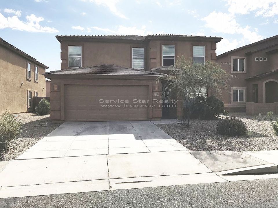 Better than new upgraded & finished 4 bedroom home + game room. Great floorplan with master bedroom and full bath downstairs, 3 more BIG bedrooms upstairs. HUGE game room/loft upstairs. Tons of storage. First floor has BEAUTIFUL WOOD LAMINATE FLOORS, stainless appliances, refrigerator, dishwasher, built-in microwave included. Full pantry. Bright dining area in front of house with lots of windows. Blinds on every window! Ceiling fans thru-out. Washer and dryer included, too. Big back yard is desert landscaped and large covered patio.ADDITIONAL FEES NOT INCLUDED IN RENT: $19 monthly admin fee, $20 monthly pet fee per pet and city sales tax.Tenant to verify all material facts including but not limited to room sizes, utilities, schools, HOA rules, community amenities, fees and costs, etc.