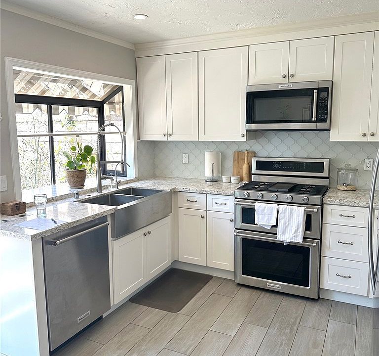 Highly upgraded townhome in prime location off El Toro Rd above Jeronimo. Kitchen remodeled with all stainless steel appliances with updated quartz counter tops hi-lighted with beautiful blend of backsplash to add to the decorum. This home has rays of sunshine coming through the double pane retrofit windows with recessed lighting throughout the home to add to its warmth and brightness. In the kitchen is an enlarged bay window with a gorgeous view of the lush mature landscaping of flower, trees and shrubs in large private patio area. There is also an upgraded side by side washer and dryer secluded in a private dining area. The two car garage allows direct entry into the beautiful patio area and directly into the home.