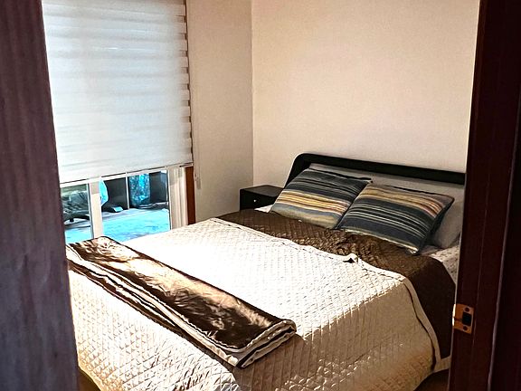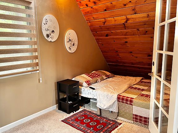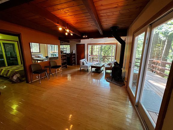 This is a 2 bedroom 2 bath cabin style house sitting on a large land in the middle of redwoods located in santa cruz mountain. One bedroom, bath and small office downstairs and one master bedroom, larger bathroom and small office upstairs. Either offices can be used as a large closet also. It has deck on three side with spectacular view, very peaceful.