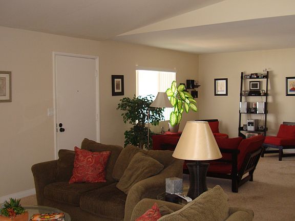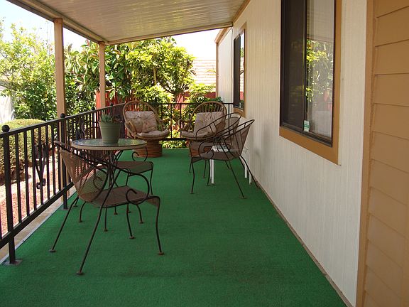 This home will make you smile! Very spacious and pristine condition with interior drywall like a single family home. Two bedrooms & two baths plus living, dining, & family areas. Bright kitchen with breakfast counter. Interior laundry room with work space. Large front porch for outdoor enjoyment & plenty of parking space under carport. Storage shed in rear yard. Well cared for family park with fabulous amenities. Close to freeway & shopping. Wonderful price for this open and bright floor plan!