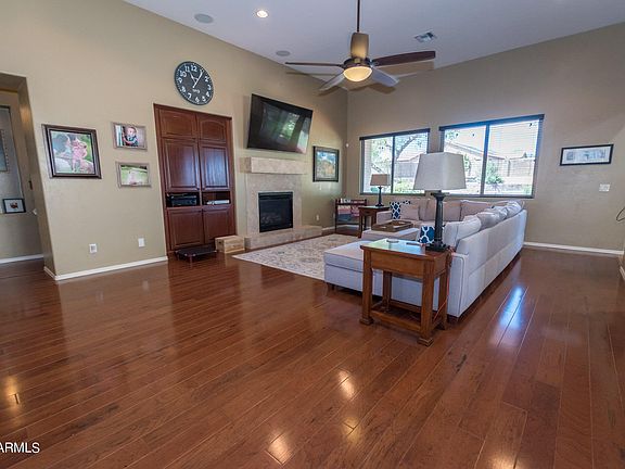 FORMER MODEL HOME that has MANY upgrades! 4 Bedrooms, 2 Bath, 3 Car Finished Garage, NEW 2023 Central A/C and Water Heater, Open Floorplan, Travertine Tile around the Gas Fireplace, Cherry Wood Built-In Entertainment center, w/ Surround Sound Speakers installed in the ceiling in the living room. Upgraded Wood Flooring in main areas, Formal Dining Room, Kitchen features Upgraded Cabinets, Granite Countertops, Island w/Breakfast Bar, and Breakfast Nook. Split Floorplan, Large Primary Suite features Large Walk-In Closet w/Beautiful Custom Organizer, Primary Bath features Dual Sinks, Separate Shower, and Jetted Garden Tub. Over-Sized Premium Lot with Beautiful Upgraded Landscaping!! This is a Highly Upgraded Model Home! The home also features a solar system (Owned, not leased). Must See!