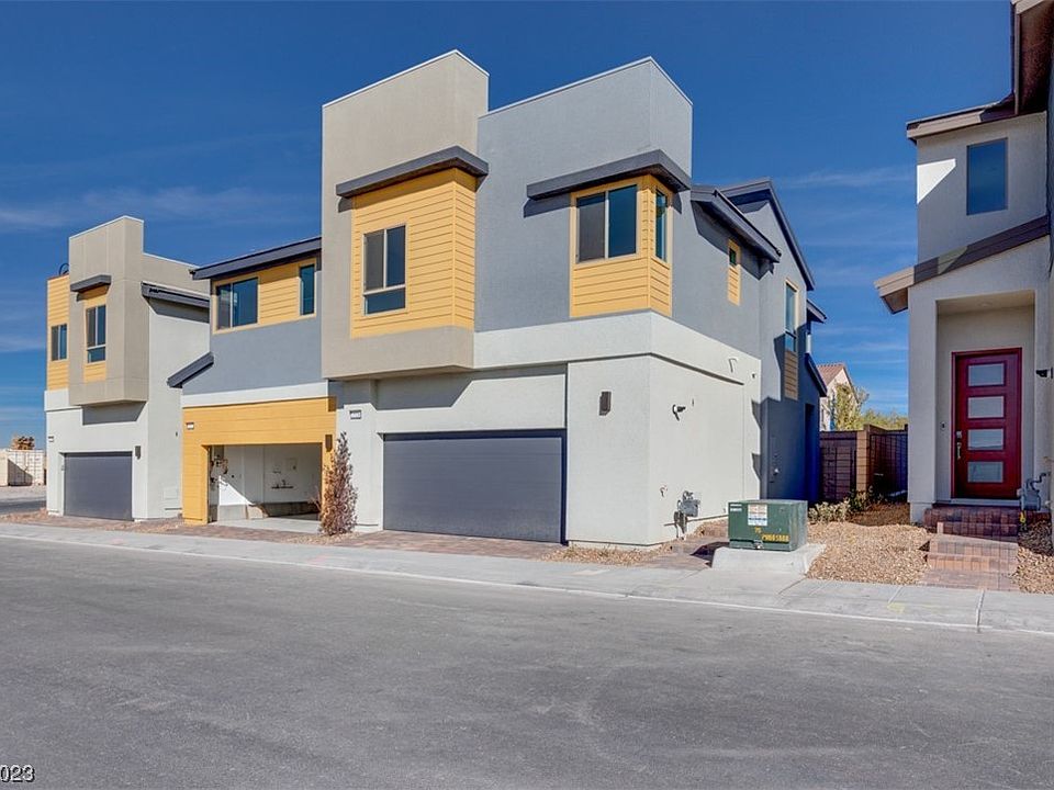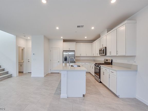 Amazing modern brand new 2 story townhome in desirable Inspirada. This townhome has many features throughout. The spacious kitchen boasts a beautiful quartz island and countertops, with white cabinets and stainless steel appliances and mixed metal hardware. The living room is just off the kitchen and overlooks the bright backyard. Upstairs boasts the spacious loft, laundry room, primary and two secondary bedrooms. The primary bedroom is large with en suite bath with white cabinets, double sinks and mixed metal cabinet hardware. Stunning!