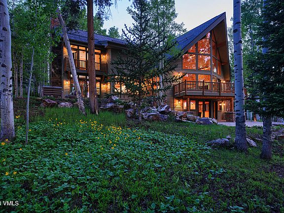This quintessential Colorado mountain home is situated on 10 acres of forest surrounded by aspens, lodgepole pines, spruce and fir with commanding views of the majestic Gore Range Mountains and teeming with wildlife. Step inside to the stunning great room with soaring floor to ceiling windows that encapsulate the experience of living in the mountains. The kitchen/hearth room is truly a special place to relax and unwind in front of the fire surrounded by windows and natural light. Special features include wide plank reclaimed heartwood pine floors, hand carved aspen and bear front door, custom etched glass shower, and onyx counter tops, a wood burning fireplace in the great room, 2 additional gas fireplaces - in the primary bedroom and in the kitchen/hearth room, Colorado buff stone patios and walkways bordered by recently planted indigenous landscaping. A new roof and air conditioning were recently completed. Tranquil and private, yet minutes to all the Vail Valley has to offer.