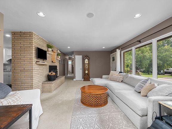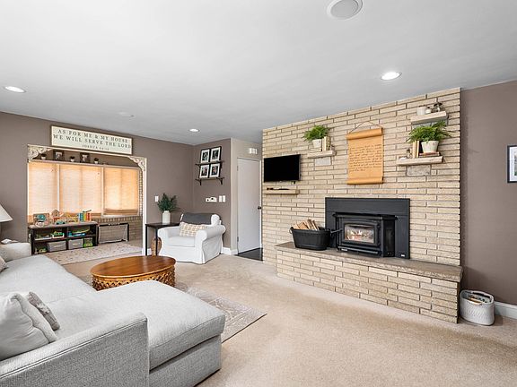 Welcome home to this East Davenport, brick ranch located on half an acre with private park like setting. Character and charm is abundant throughout the stylish and updated ranch with two wood burning fireplaces. This home features an updated kitchen with granite countertops, white cabinets, functional floor plan, pantry, informal dining space with slider leading to the covered patio with stamped concrete. Three bedrooms and one and a half baths are on the main level with additional space for office or playroom with built in surround sound speakers (receiver will stay with the home). The recently updated finished basement with LVP flooring, wood burning fireplace, bar area with full refrigerator, flex room currently used as the fourth non conforming bedroom, and shiplap walls is great additional finished space. The attached 2 car garage is extra wide and the backyard features a large shed too! The storage space is huge with laundry area,  built in shelving, new water heater (2024), and new furnace and AC (2017).  Other updates include: Radon Mitigation (2016), bedrooms painted (2017), basement remodel (2018).