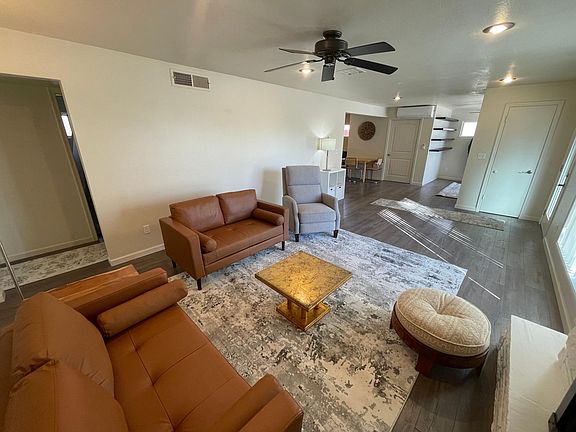 Great opportunity to lease a newly renovated single level home in Flagstaff, Arizona. This 3 bedroom 2 bathroom house has a detached 2 car garage, an oversized driveway for additional parking and an electric vehicle charging outlet. Home is fully furnished with lots of windows, allowing for an abundance of natural light to fill up the rooms. Enjoy multiple common areas with a living room, family room and a sunroom. Fenced backyard has a paver patio with spectacular mountain views. No Smoking Furnished Unit