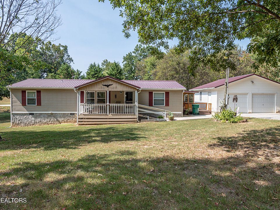Discover the perfect blend of comfort and convenience in this adorable ranch-style home situated on almost an acre! This ranch home provides ample outdoor space, covered porches, and a spacious 24x24 two car garage with close proximity to town without the city taxes! You'll enjoy features like hardwood floors throughout, extra large master bedroom and bath, split bedrooms, dining area, eat-in kitchen with all appliances to remain including a new Dishwasher in May 2025, new kitchen plumbing, and more! Low maintenance metal roof installed in 2012 newer windows from Window World have been installed, permanent foundation, and New HVAC in 2017. You'll find this one is immaculately maintained! Don't miss out on this opportunity to own this great home!