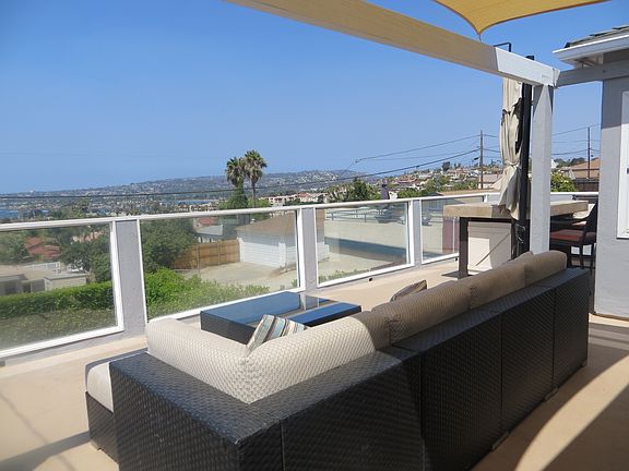 Panoramic views of Mission Bay, Pacific Ocean, Sunsets and Fireworks from the living room, view deck and kitchen! 2 bedroom and 1 bath in main house plus an attached i bedroom and 1 bath studio or 3rd bedroom. Private enclosed courtyard! Fenced back yard! Upper and lower viewing decks! Ally access! Remodeled kitchen and two bathrooms! This home is perfectly suited for a vacation rental!