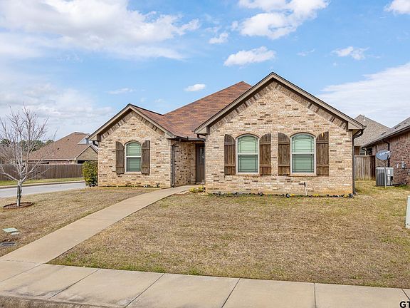 Welcome to this beautifully designed home, perfectly situated on a corner lot in Guinn Farms. Conveniently located between Whitehouse and Tyler, this home offers the best of both worlds—top-rated Whitehouse ISD schools and easy access to all the conveniences of Tyler. Step inside to discover a spacious open-concept layout with high ceilings, elegant crown molding, and wide baseboards that add a touch of sophistication. The chef’s kitchen is a standout, featuring granite countertops, black stainless aplliances, pantry, soft-close cabinets, and convenient pot drawers—a dream for any home cook!The primary suite is a relaxing retreat, complete with walk in closet. Storage is no issue here, with abundant closet space and built-in shelving throughout the home. Outside, the meticulously landscaped front and backyard are designed for both beauty and ease, boasting a flagstone patio extension, and a low-maintenance lawn with a sprinkler system. Enjoy year-round outdoor living on the covered patio, equipped with TV connection and a ceiling fan for those warm Texas days This home truly has it all—style, comfort, and a fantastic location. Schedule your private tour today!