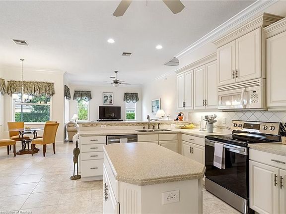 Located on Island Drive, a gorgeous street in the golf course community of Sun 'N Lake, this perfectly maintained Will Randall built home is sure to impress! From the moment you pull into the driveway, you will notice the attractive front elevation, nicely landscaped yard, pavered driveway & golf cart path, and the thermopane windows are new too! Inside you will find 10' ceilings, crown molding & abundant windows, bringing in plenty of natural light. This spacious home has a formal living room & dining room, plus a 14'x18' family room, perfect for entertaining. The large kitchen comes with staggered cabinets, newer stainless steel appliances, solid surface countertops, center island & pantry. The spacious owner's suite features a double step ceiling, customized walk-in closet and a large bath with dual sinks, garden tub & corner shower. There are (2) additional bedrooms and a bath for your family or guests. And let's not forget the oversized lanai & 24'x36' screened cage, with half bath, ideal for a hot tub or swim spa. Don't delay. This home won't last long.