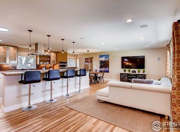 SE Fort Collins Acreage with NO HOA! Completely updated ranch inside and out with open concept. Renovated kitchen includes a large granite island, 6-burner gas cookop, soft close custom cabinets, prep sink & Stainless Steel appl. Hickory floors on main level. Large custom laundry. Half basement with built in office, gas fireplace & on-suite bedroom. Detached heated shop offers lots of extra storage w/a 9 ft garage door. Use by right offers potential of 3 additional lots to build future homes.