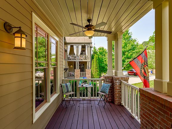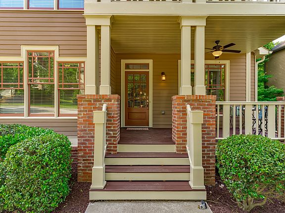One of the largest floor plans in the Parkside Walk community. Impressive 3 story craftsman-style home with covered porches, patio and large deck too, feels like new. Open floor plan includes a living room with fireplace and built-ins, contemporary kitchen and dining area. Main floor includes a bedroom (or office) & a full bathroom. Upstairs are three large bedrooms and two bathrooms. Spacious master that includes covered porch. Downstairs is a large daylight den, bedroom, full bathroom & bonus room. Private wooded area & terraced yard plus two-car garage.