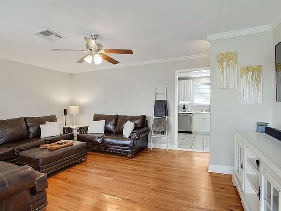 Awesome updated home that lives large. This 3 bedroom/2 bath has beautiful hardwood floors in the living area; the over-sized chef's kitchen features features a gas range -stainless steel Samsung appliances; beautiful epoxy counter tops and newly installed back-splash. The private bedroom is large w/en-suite bath and inside laundry. Roof is 2019; double insulated windows in living room; flood insurance below $1000;Brand new driveway/sidewalk