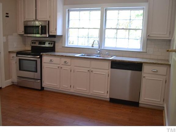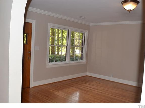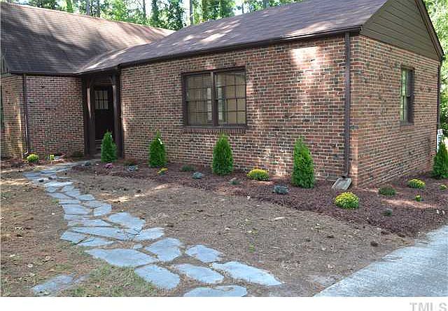 Rare find, near Duke, Unique Roman Chiclet 50's brick cottage, one level living. Transformed gleaming hardwoods, granite kitchen & master bath,tile, Screened porch, bead board ceiling, deck , Brick garage/no doors 3 sides (rear entry, breezeway. .88 acre backs to Duke land. Large basement with rooms, open shower & fireplace, for studio or workshop. Privacy Fence. New heat pump.