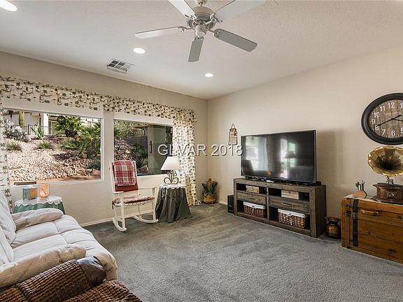 Whitney model sits on a premium Solera lot offering a sense of privacy. Elegant yet comfortable home features an open concept highlighted by nine-foot ceilings and bright windows. Upgrades include stone pattern tile, two-tone paint, and ceiling fans. Kitchen boasts corian counters, quality cabinetry with pull out shelves, breakfast bar, and upgraded GE appliances. Courtyard entry, covered patio with fan, and peaceful yard compliment the exterior.