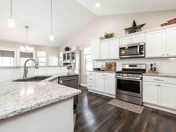 - Kitchen Island, Eat-in Kitchen, Granite Counters, Open Floorplan, Vaulted Ceiling(s), Walk-In Closet(s), Double Vanity, Tub