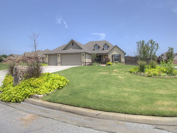 Like new one story beauty with split bedroom plan. Living area with high ceilings open to kitchen. Covered patio with Pergola & Fireplace that's great for entertaining and relaxing with family and friends! This home is a hidden gem. A must See with easy access to Hwy 66, Hwy 266 & turnpike.