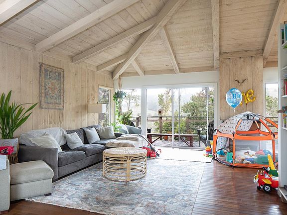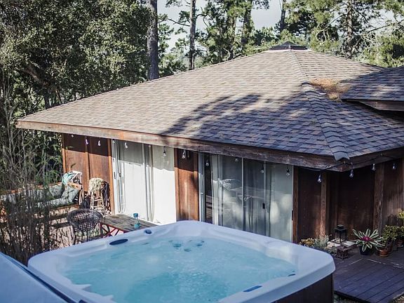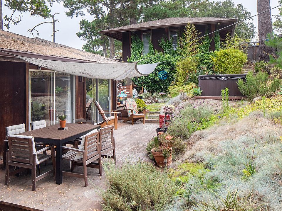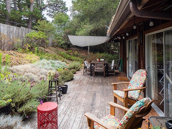 A wonderful location close to town and beach. 1 acre, private Zen-like setting on end of the cul-de-sac, sweeping forest and canyon views. Main house is 3 beds/2 baths, plus detached studio with full bath and one car garage. Home dated but has good bones, new decks,new furnace, new gutters.