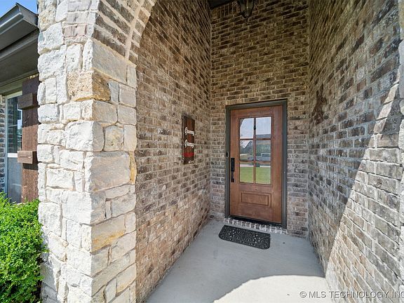One owner home in Verdigris School District. Corner, cul-de-sac lot, fenced back yard with storm shelter and 3 car garage. Entry leads to large living area with vaulted ceilings, beams and natural light from the open concept kitchen. Kitchen boasts of island with seating and storage as well as walk in pantry. The split floor plan includes a spacious primary bedroom, double vanity and soaking tub in primary bath with the master closet opening to the laundry room. Two additional bedrooms with large full bathroom on opposite side of home as well as a 4th bedroom/office. Situated less than half a mile from both Highways 66 and 266 with access to turnpike in 2 miles. Call today to schedule your viewing!