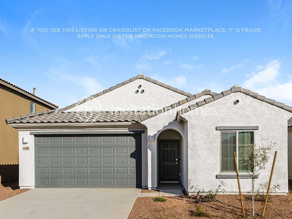 Lease this home and get more from Invitation Homes professional property management. This home comes fully loaded with quality amenities, must-have services, high-end tech and 24/7 emergency maintenance. Your estimated total monthly payment is $2154.90. That covers your base rent, $2095.00 + our required services designed to make your life easier: Air filter delivery ($9.95), Smart Home with video doorbell ($40), and Utility management ($9.95). We've built value into your lease with ProCare it's free! Our team of qualified professionals will take care of your home maintenance while you focus on the things that matter. And you get access to our exclusive resident offers with discounts to some of our favorite brands. Apply for select homes by 3/25 to get your first month of base rent free. *Base rent does not include Smart Home services ($40), internet package (up to $85), air filters ($9.95) and utility management ($9.95) & any other optional fees you may opt in to. This home is part of Copper Falls, a thoughtfully planned community. Learn More about what Copper Falls has to offer. Copper Falls offers newly built 3 and 4-bedroom homes for rent in the West Valley, blending modern living with community charm. Each home features granite countertops, stainless steel appliances and a private, fenced yard, perfect for pets. Residents enjoy access to two neighborhood parks, a greenbelt with trails, a playground, a basketball court and picnic areas. Located in scenic Buckeye, you'll enjoy outdoor adventures at White Tank Mountains, and shopping and dining at Sundance Towne Center. At Invitation Homes, we offer pet-friendly, yard-having homes for lease with Smart Home technology in awesome neighborhoods across the country. Live in a great house without the headache and long-term commitment of owning. Discover your dream home with Invitation Homes. Our Lease Easy bundle which includes Smart Home, Air Filter Delivery, and Utilities Management is a key part of your worry-free leasing lifestyle. These services are required by your lease at an additional monthly cost. Monthly fees for pets and pools may also apply. Home Features and Amenities: Air Conditioning, Bonus Room, Fenced Yard, Garage, Granite Countertops, Kitchen Island, Long Lease Terms, Open Floorplan, Patio, Pet Friendly, Primary Bedroom on Main, Recessed Lighting, Single Story House, Smart Home, Stainless Steel Appliances, Tile, W/D Hookups, and professionally managed by Invitation Homes. Neighborhood Features and Amenities: Basketball Court, Park, Playground Invitation Homes is an equal housing lessor under the FHA. Applicable local, state and federal laws may apply. Additional terms and conditions apply. This listing is not an offer to rent. You must submit additional information including an application to rent and an application fee. All leasing information is believed to be accurate, but changes may have occurred since photographs were taken and square footage is estimated. Furthermore, prices and dates may change without notice. See InvitationHomes website for more information. Beware of scams: Employees of Invitation Homes will never ask you for your username and password. Invitation Homes does not advertise on Craigslist, Social Serve, etc. We own our homes; there are no private owners. All funds to lease with Invitation Homes are paid directly through our website, never through wire transfer or payment app like Zelle, Pay Pal, or Cash App. For more info, please submit an inquiry for this home. Applications are subject to our qualification requirements. Additional terms and conditions apply. CONSENT TO CALLS & TEXT MESSAGING: By entering your contact information, you expressly consent to receive emails, calls, and text messages from Invitation Homes including by autodialer, prerecorded or artificial voice and including marketing communications. Msg & Data rates may apply. You also agree to our Terms of Use and our Privacy Policy.