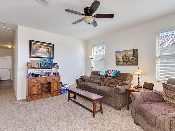 OWNED SOLAR Great Single story 3 bed 2 bath home. 2 car garage. Open floor plan with spacious kitchen. Black appliances, smooth top stove, over range microwave, dark espresso colored cabinets with stainless steel handles, lots of storage and counter space. Master suite has tub and shower combo, vanity at the sink, linen closet, and large master walk in closet. Sliding door from the eat in kitchen area takes you to the covered patio and very large backyard, perfect for gathering. Energy Star, ceiling fans. Currently receiving over $1000 in credit from APS with no bill for electric!, 9' ceilings, 2'' wood blinds , raised panel doors throughout and softwater system are just a few added highlights to the home. A must see!!