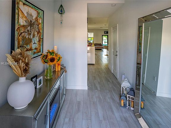 Discover this property with 4 bedrooms, 3.5 bathrooms, modern CONTEMPORARY design. This stunning property combines luxury and practicality. Equipped with solar panels to minimize energy costs and impact-resistant windows and doors to reduce insurance costs, the seller will cover all debts related to these improvements at closing, offering a significant property tax reduction for the new owner. Enjoy a private garden with a crystal-clear pool, an elegant staircase with glass railings, and parking for five vehicles.