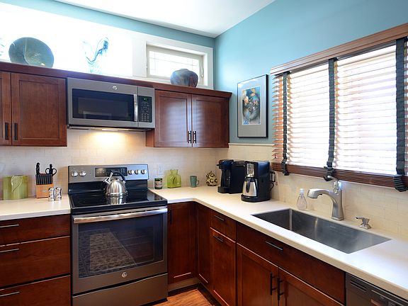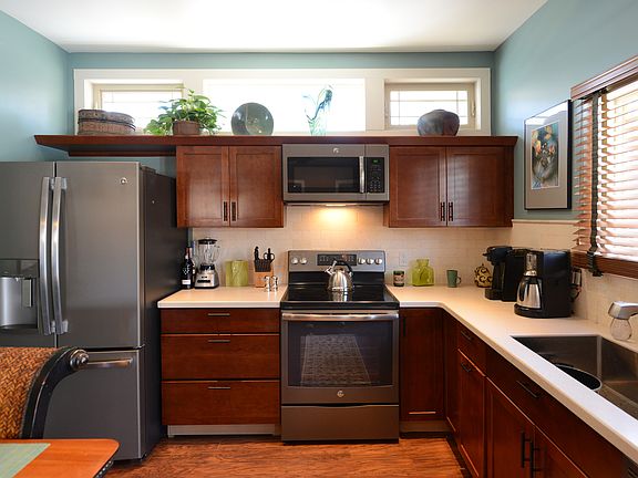 This Cozy, Loft Style, single level home is located in the quiet, highly sought after Old Colorado City neighborhood, with just a five minute walk to shopping, dining, pubs and more. This unfurnished home is tucked into a very private, completely fenced back yard with a large covered patio including dining, sitting and barbecue areas. The open floor plan includes a beautiful cherry wood cabinet kitchen with solid surface counters and all stainless steel appliances. The LG laundry is tucked away in a large closet that includes additional storage and garment area. The luxurious bath with a heated floor includes a large shower with a sit down bench. As a bonus, a private separate bedroom has been added to facilitate a quiet space away from the open room plan. It's ideal for a child or guest. This, clean energy, all electric home is super insulated and heated and cooled by a new split system. The enclosed back yard has low maintenance artificial turf so you can spend your time playing in the great outdoors or exploring all the wonderful breweries and restaurants the area has to o er. The home has one o street parking space and ample on street parking available. A storage area accessible from the outside is included. This bungalow is located behind the main house as shown in exterior photo. The bungalow comes with an off street parking spot shared with the house. A lease is available for 1 to 3 years optionally renewed yearly. Electricity is separately billed, however water bill is apportioned. No smoking, and tenant is responsible for snow removal.
