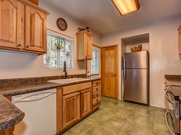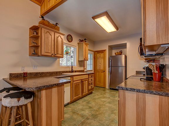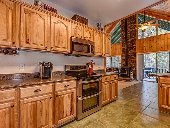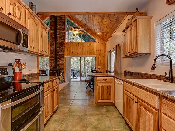 Get out of the summer heat and into your own getaway cabin in the tall, cool pines! This one is immaculate and ready for YOU to move in. 2 bdrms/full bath on main level, plus washer & dryer. In the spacious loft is the 3rd ''bedroom'', plus a 1/2 bath. Central heat & a/c. Pvt well. Beautiful t&g on the vaulted ceilings adds to that desirable, cozy, ''cabiny'' feel. W/B Fplc. Large windows invite the forest right into your home. Since the property has alot of flat area, it's a good place for a game of horseshoes, corn hole, or whatever makes you happy. When you're not out and about or playing games in your yard, you'll surely enjoy relaxing, barbecuing or just reading a good book & gazing at the beautiful sunsets from your maintenance-free covered deck. PERFECTION! Call now!