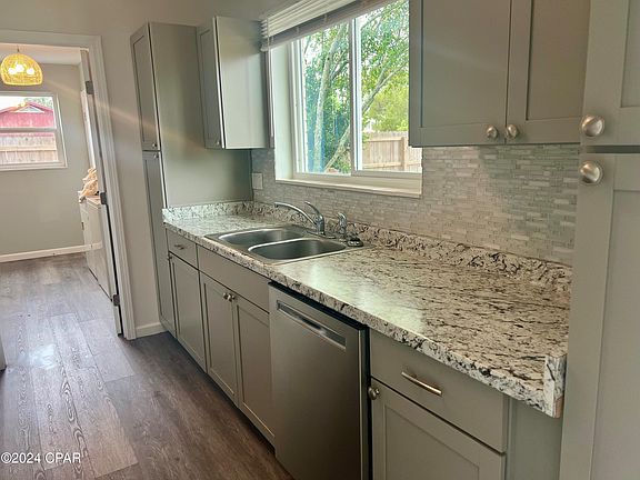 Whether you're looking for a family home, a weekend getaway, or an income-producing property, this home checks all the boxes. Solid block house with 3 bedrooms, 2 bathrooms, split floor plan with a covered carport. Short-term rentals are permitted. Home is located approximately 1.5 miles from the Gulf of Mexico and St. Andrews State Park. It's within walking distance to dining, grocery stores, and more. Almost completely renovated with a new roof and windows in 2023, new air conditioning and heating system in March 2024 for energy efficiency. Vinyl plank flooring throughout, new kitchen cabinets, stove, dishwasher, microwave in 2022. Large, fenced back yard for privacy and plenty of room for a pool if wanted. **PROFESSIONAL PHOTOS COMING SOON**