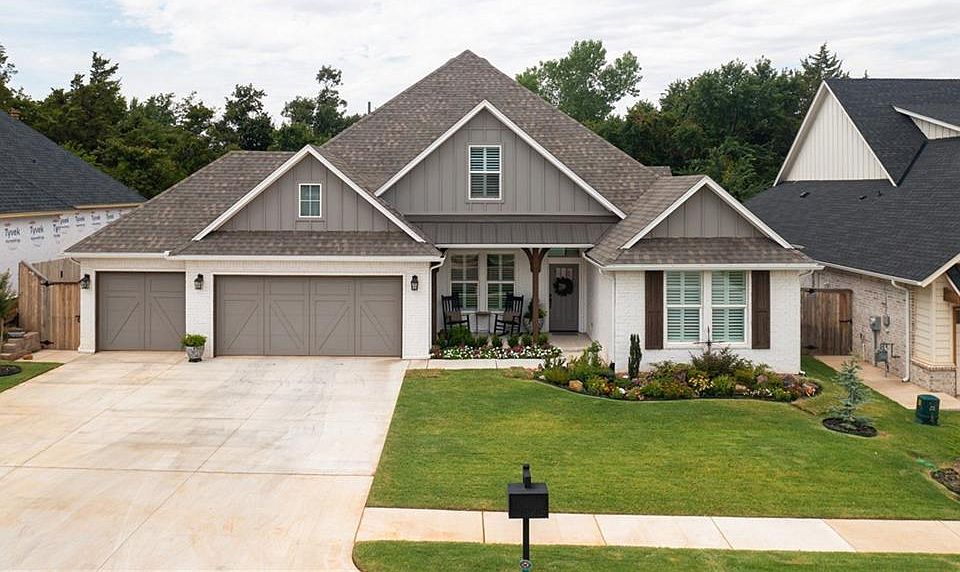 Multiple Offers Received. Best & Final by 9:00am 8/1/22. Newly constructed with countless improvements. Premier location in East Edmond. The welcoming patio will greet you with luscious landscaping (front & back yard) and fresh updated exterior paint! As you enter, you will adore the beams and barn doors greeting a formal study. Secondary bedrooms are spacious for all of your large furniture, including the large beds! Upgraded carpet and carpet pads in each bedroom, whilst the elevated wood-look tile flows through all of the main living areas. Plantation shutters throughout and custom drapery included. Family living room features built in cabinets and impressive fireplace with brick to ceiling. Designer kitchen matches with cabinets to ceiling, under cabinet lighting and stainless steel appliances.