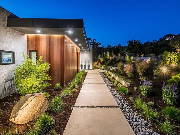Modern Luxury new construction home with breathtaking Las Trampas views overlooking Roundhill Country Club. This extraordinary 4-bedroom plus office, 3.5-bath residence spans over 5,800+ sq. ft., blending contemporary architecture with an open living concept. Expansive walls of glass flood the home with natural light, seamlessly connecting the indoor and outdoor spaces for an airy, open feel. The sleek chef's kitchen is equipped with top-of-the-line appliances, custom-built cabinetry, and a large island featuring a salad sink and eat-in dining area, perfect for both casual and gourmet entertaining. Additionally, a versatile bonus room provides endless possibilities—it can be built out as an ADU, game room, home theater, gym, golf simulator, or anything else you envision. Glass railings, hardwood floors, designer finishes, and a custom wine display add to the luxurious touches throughout the home. Multiple entertainment areas flow throughout the home’s interior and exterior, offering ideal spaces for hosting guests or enjoying quiet family time. Located on a 1-acre lot overlooking Roundhill Country Club, the property offers ample room for a detached ADU and a pool.