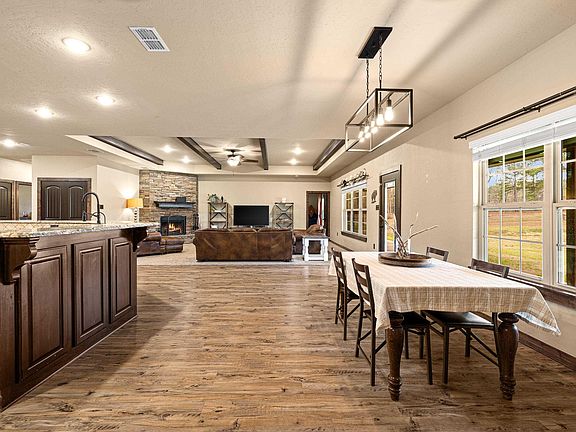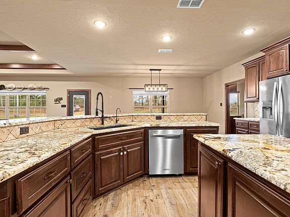 Your Dream Home Awaits in East Texas! Get ready to fall in love with this stunning 5-bedroom, 3-bath home on 9.45 acres in the coveted Harmony ISD! With 3,008 sq. ft. of open-concept living, custom cabinetry, and a master split floor plan, this home is packed with comfort, charm, and endless possibilities. The master suite is a true retreat, featuring a spa-like bath, soaking tub/shower combo, and a walk-in closet with a built-in safe. Four additional bedrooms with walk-in closets offer plenty of space for family, guests, or even a home office! Calling all chefs—this gourmet kitchen is a dream! Stainless steel appliances, double ovens, granite countertops, and a walk-in pantry make cooking and entertaining a breeze. Plus, enjoy top-tier water filtration for the freshest water right at your fingertips! Cozy up by the wood-burning fireplace in the inviting living area, where warm meals and sweet memories await in the charming dining space overlooking the backyard. Outside, the possibilities are endless! With room for horses, cattle, a homestead, barn, shop, or even a pool, this property is ready for your vision. The chicken coop and livestock pen are already in place—just add chickens for fresh eggs! Plus, an older single-car garage offers extra storage or space for a new project. Enjoy breathtaking country views and total privacy while still being conveniently close to town. This is the country paradise you’ve been searching for—don’t miss it!