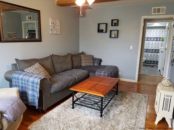 Make yourself right at home in this cozy 2 bedroom ranch, just under 1000 sq ft. Nestled on a peaceful one acre parcel and is framed to the east by beautifully maintained pasture and mountain view to the west! Enjoy tranquil evenings next to the fire pit! Open dining room and kitchen are comfortably sized to host holiday dinners and all your entertaining needs. The galley kitchen has plenty of cabinet space and was given a facelift within the last 5 years, including new appliances, counters, farm sink, and hardware. A total and very tasteful new bathroom was added in 2019. The split floorpan allow for privacy as the bedrooms are on opposite ends of the home. Master bedroom has lots of closet space and there is a separate laundry/storage area next to the rear door. Second bedroom can be combined with the small den/study to make more room, or can be used as a home office/studio, you decide! Interior has been loved and freshly painted inside. Boiler has been maintained every year and is estimated to be +/- 10 years old. Water system installed 2 years ago and UV light replaced in 10/2019. New pressure tank 2017 and propane hot water heater 12/2019. Come enjoy this country setting which is within 20 minutes to Minnewaska, Awosting, Sams Point and Mohonk Preserve. Enjoy the rail trails, wine trails, breweries and a vast variety of farm to table restaurants all within a short picturesque drive! Within 90 minutes to the GWB and 30 minutes to Stewart International airport. Affordable and comfortable for full time residence or perfect weekender.