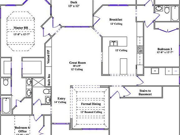 A custom build to suit home by Jeff Maynard Builders.Ranch style 4 bedroom, 3 full bath on unfinished walk-out basement. Open floor plan with 12' ceilings & hardwood flooring everywhere - tile in bathrooms. Decorative ceilings, central vac and executive finishes throughout.