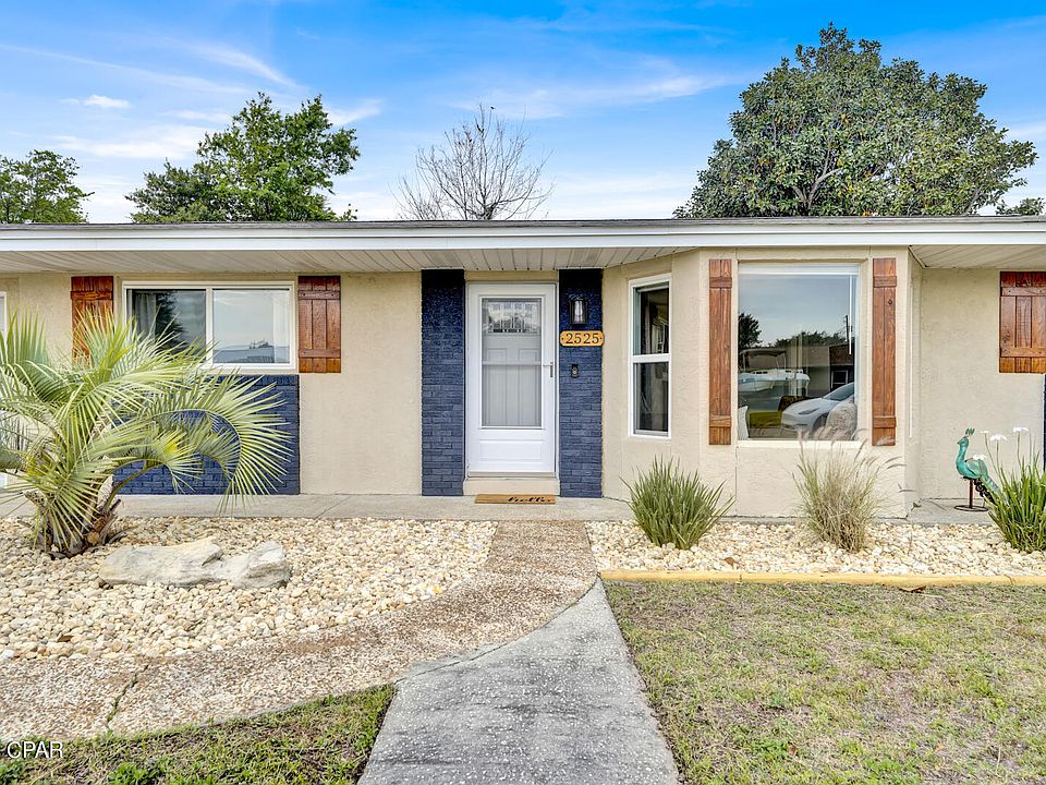 UNDER CONTRACT- TAKING BACKUP OFFERS. Welcome to your quintessential beach retreat , nestled just minutes from the sparkling shores of the Emerald Coast in PCB. This charming home is situated on a quiet cul-de-sac filled with architectural charm and well established trees- creating the perfect ambiance. This home has been thoughtfully updated to reflect the epitome of coastal living, featuring upgrades throughout that enhance both style and functionality. Step inside to discover new windows that flood the interior with natural light, creating a bright and airy ambiance that invites relaxation. Thoughtful details such as custom acacia countertops in the kitchen to the torched pine shutters that greet you on the front porch. The split floor plan ensures versatility to accommodate every stage of life, whether you are just starting out, thinking of retiring or wanting an investment property. The backyard is fully fenced and is home to a large magnolia tree that offers an abundance of shade. Large planter boxes are ready for any level of gardening! New water installed 2024, HVAC installed 2021. Washer and dryer will convey with purchase. Located minutes away from the PCB VA Clinic, Navy Base, and Bay Pointe Golf Club. With its serene surroundings, convenient location, and coastal charm, this home is your ticket to living the beach life you've always dreamed of...TODAY.